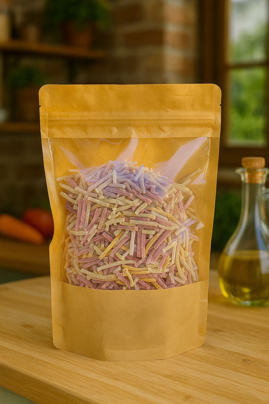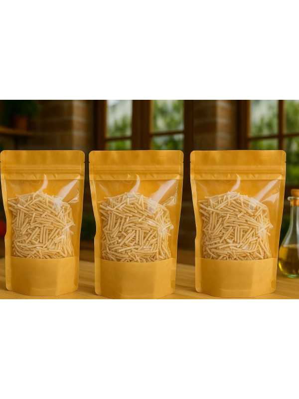 %100 doğal ev yapımı, el kesimi olan Sebzeli Eriştemizin içinde hiçbir katkı maddesi bulunmamaktadır.